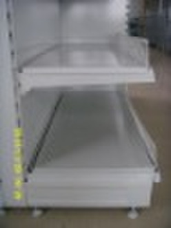Supermarketshelf G type suitable for Hypermarket,widely sold to Euro country. Producs description: 1)Struction details: a)Upright:30*80*2.5mm b)Thickness of shelf:1.0mm c)Thickness of back panel:0.7mm 2) Size (L x W x H): a)Single-side:900/1000/1200 x 450/500/550 x1500/1800/2000/2200mm b)Double-side:900/1000/1200 x 900/1000/1100 x1500/1800/2000/200mm Schematic DrawingModelHeight (mm)Shelf Depth(mm)Rack's total deplth (mm)Length(mm)Types of the back panelLoad capacity per layer(kgs)Up shelfBottom shelfSingleDoubleBitmap GRS1500 1800 2000 2200380/480430/530450/500/550900/1000/1100900 1000 1200 Mesh Plain80-1003) Surface treatment: acid cleaning-phosphorization-plastic spray(Power coating)